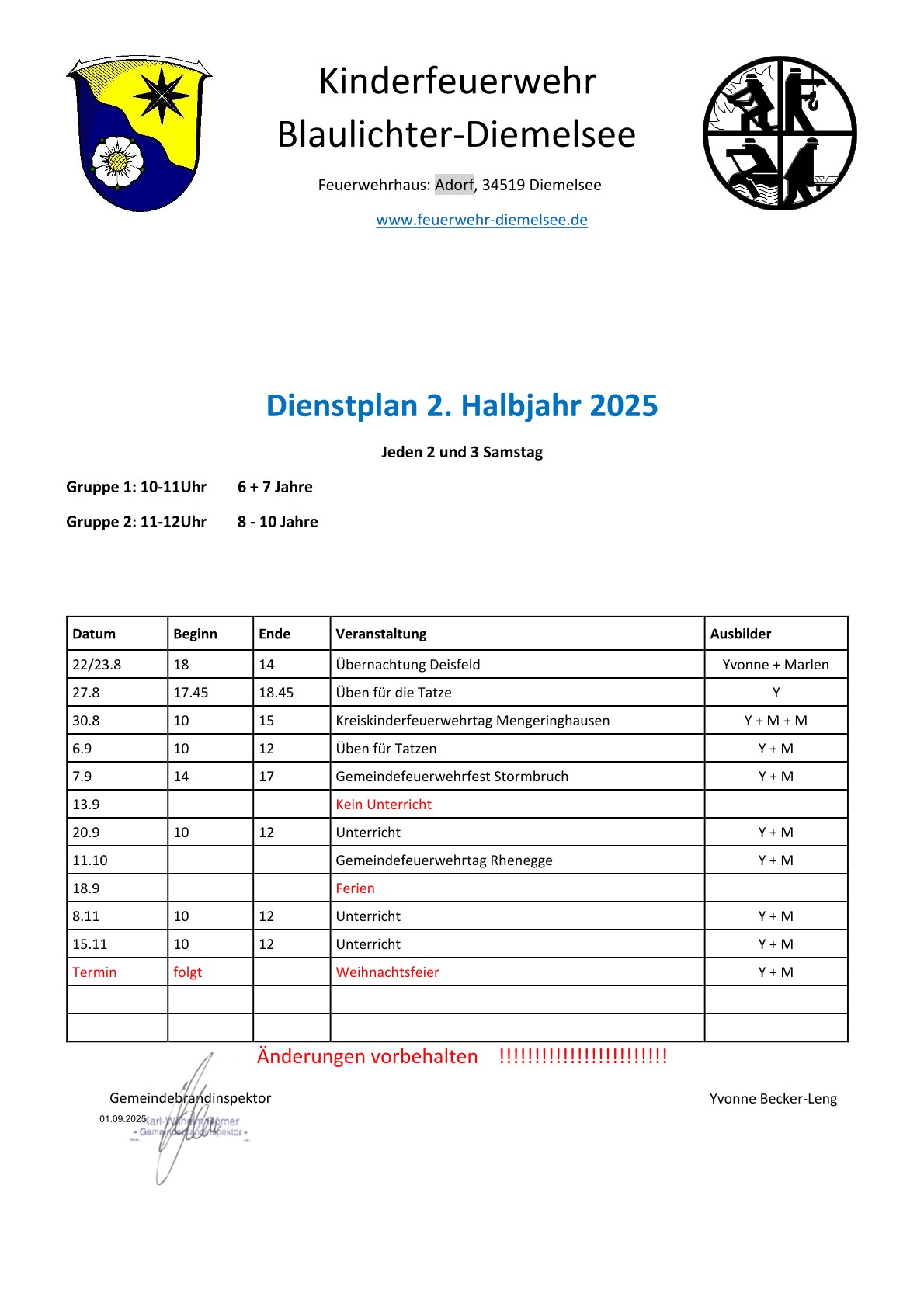 Ansprechpartner der Kinderfeuerwehr Diemelsee